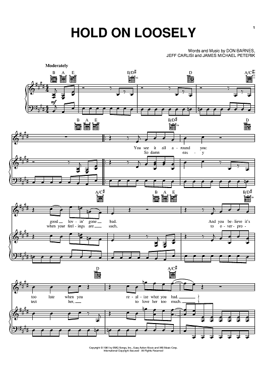 Digital Sheet Music for Hold On Loosely by 38 Special, Don Barnes, Jeff Carlisi, James Michael Peterik scored for Piano/Vocal/Chords; id:381345