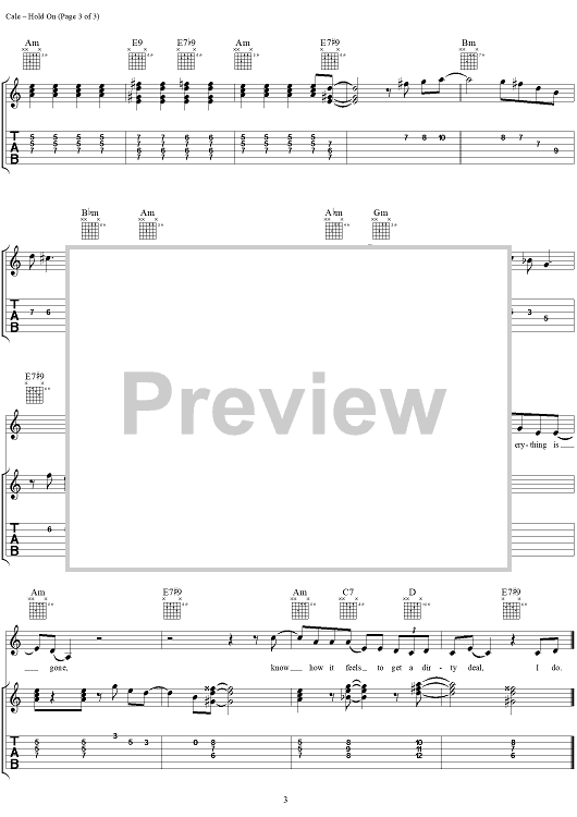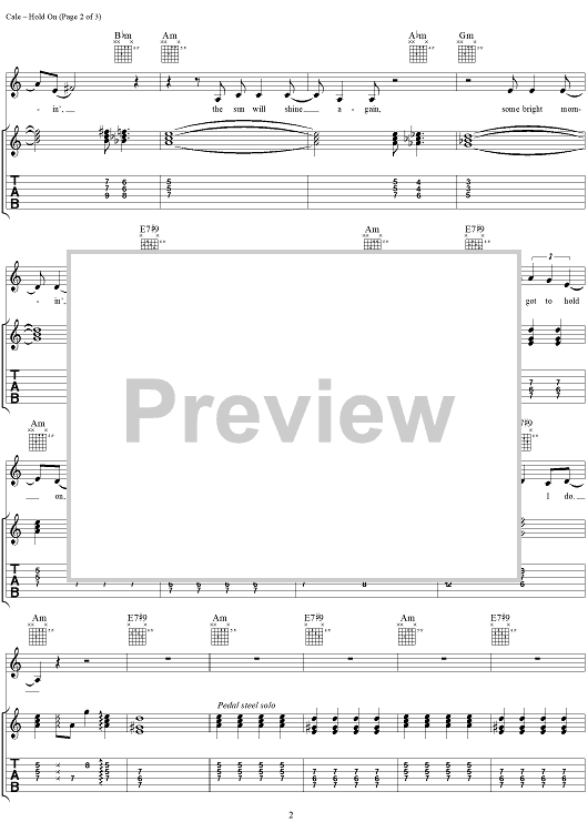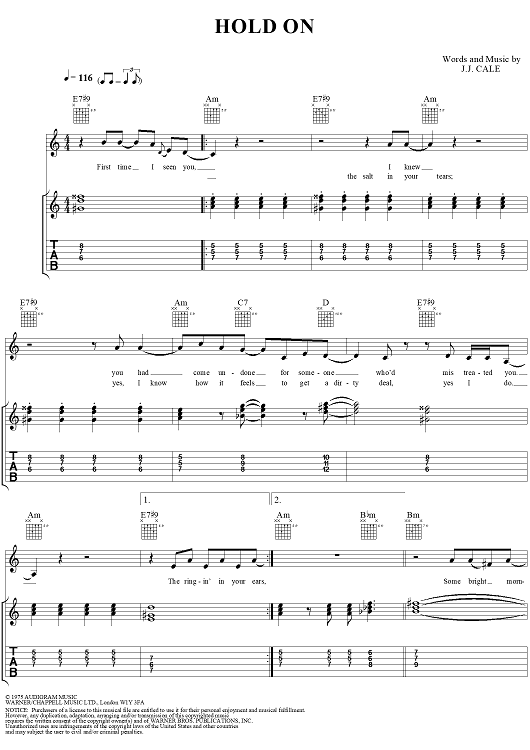 "Hold On" Sheet Music by J. J. Cale