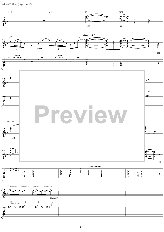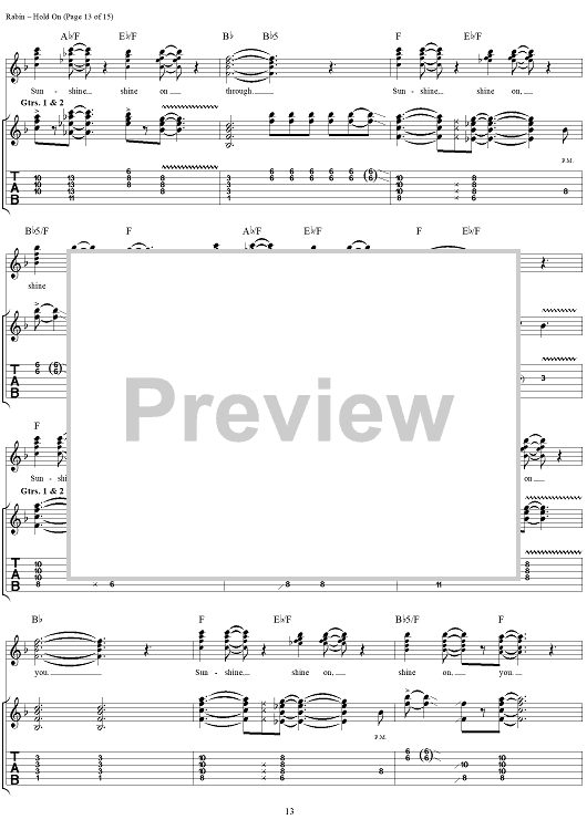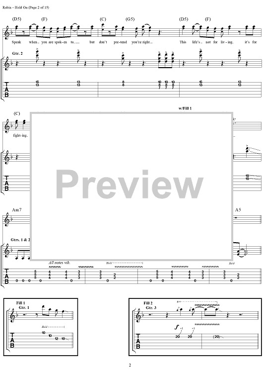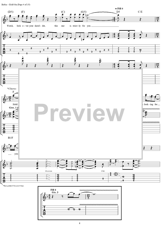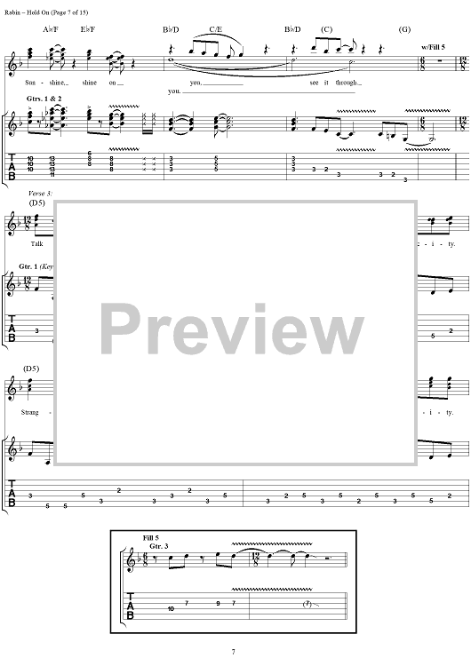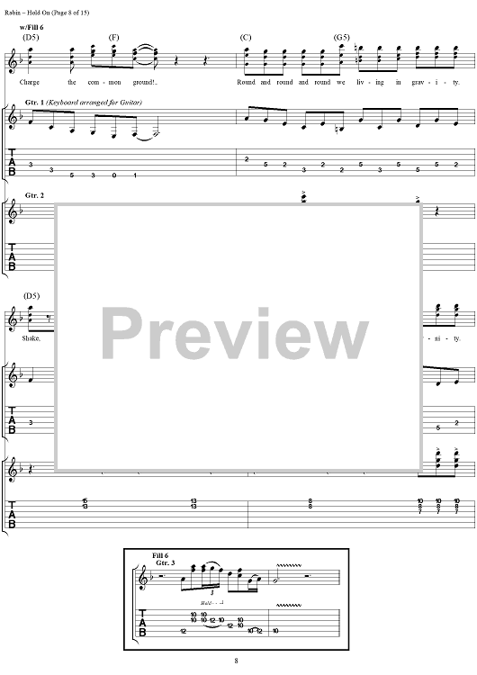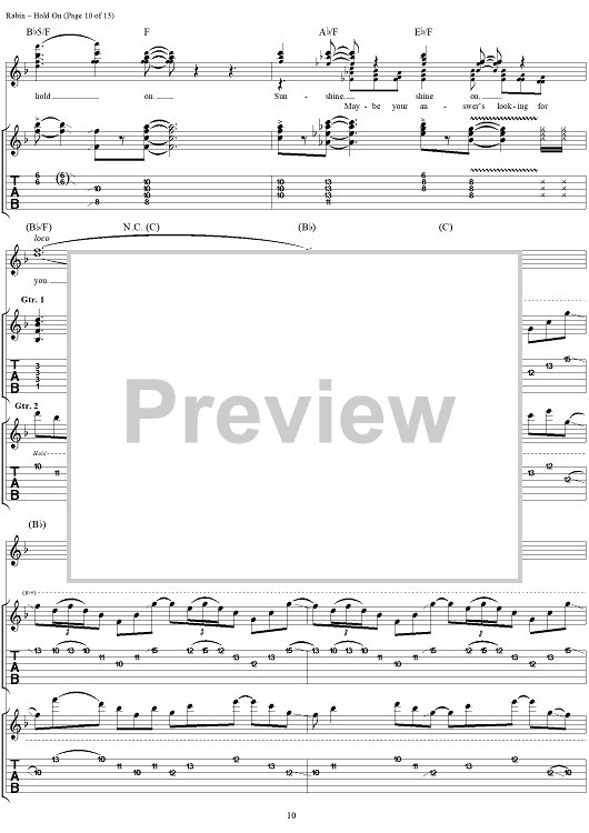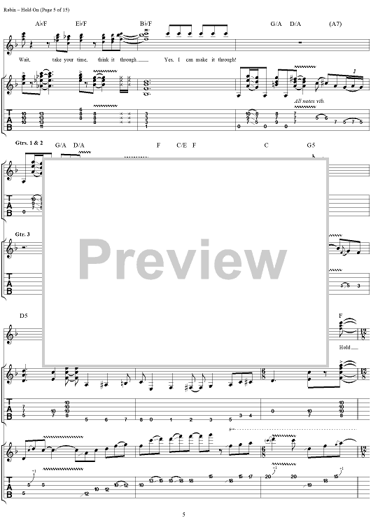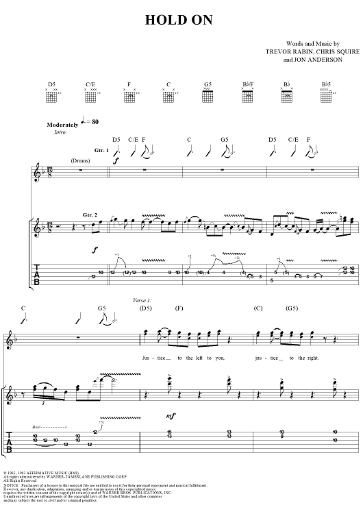 Digital Sheet Music for Hold On by Yes, Jon Anderson, Chris Squire, Trevor Rabin scored for Guitar Tab/Vocal; id:119008