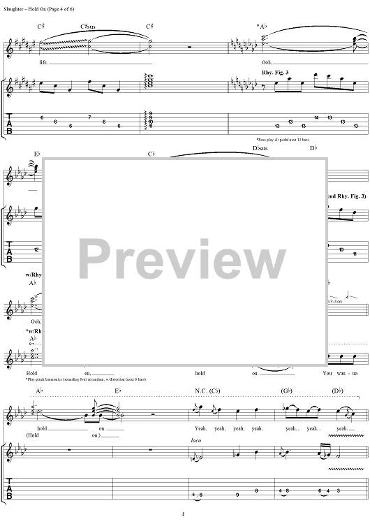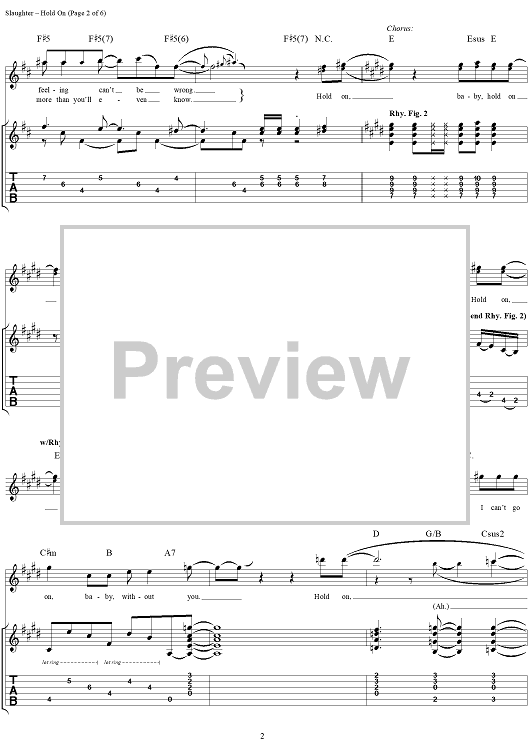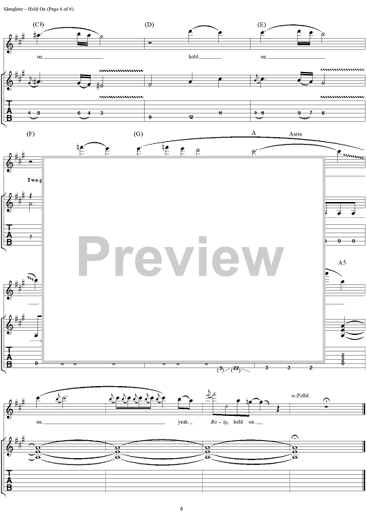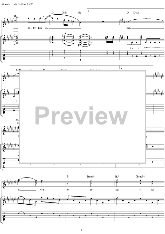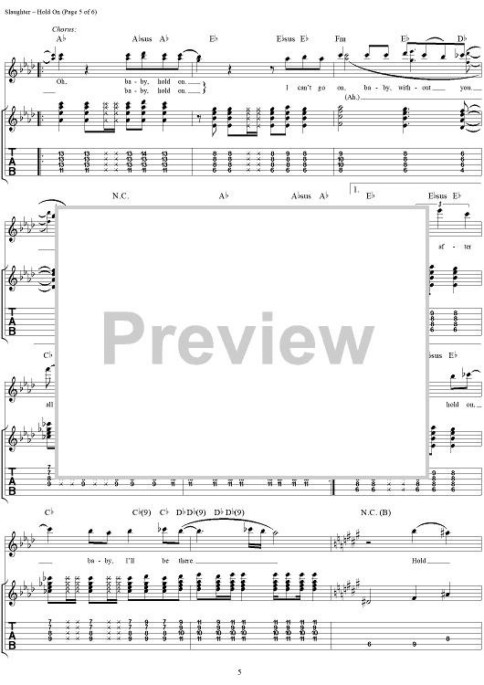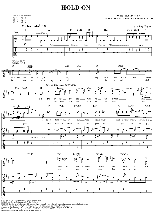 Digital Sheet Music for Hold On by Slaughter, Dana Strum, Mark Slaughter scored for Guitar Tab/Vocal; id:137811