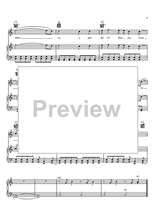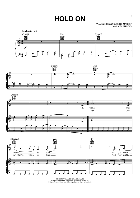 Digital Sheet Music for Hold On by Benji Madden, Joel Madden, Good Charlotte scored for Piano/Vocal/Chords; id:373701