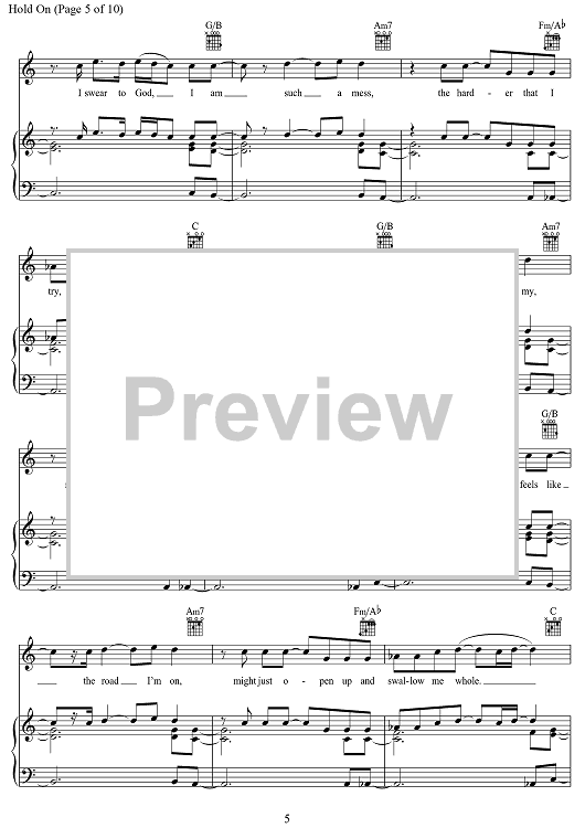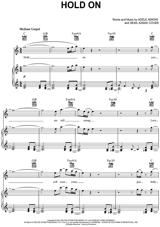 Digital Sheet Music for Hold On by Adele Adkins, Adele, Dean Josiah Cover scored for Piano/Vocal/Chords; id:470080