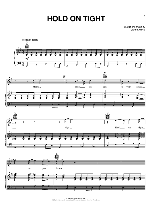 Digital Sheet Music for Hold On Tight by Jeff Lynne, Electric Light Orchestra scored for Piano/Vocal/Chords; id:402703