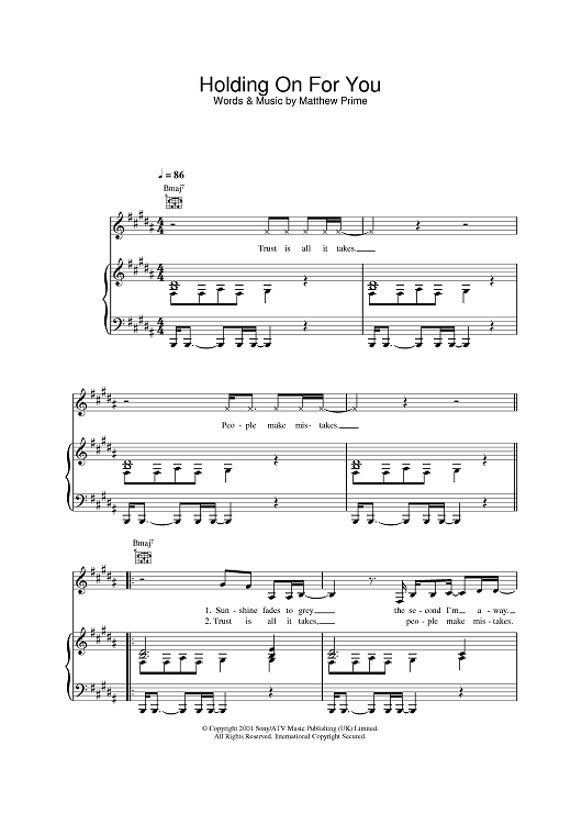 Digital Sheet Music for Holding On For You by Liberty X scored for Piano/Vocal/Chords; id:378420