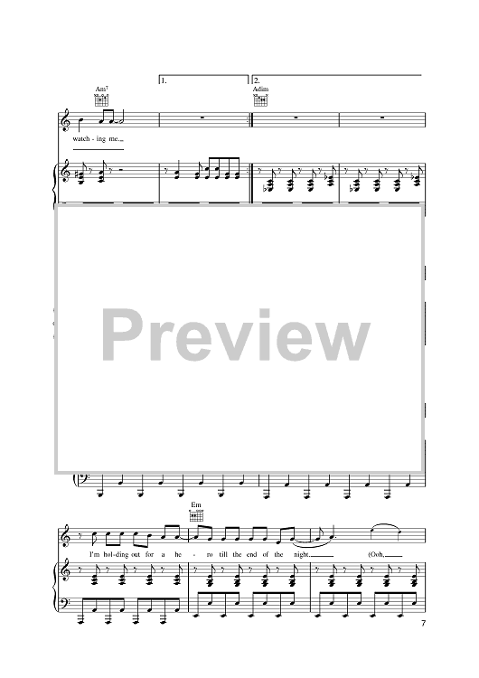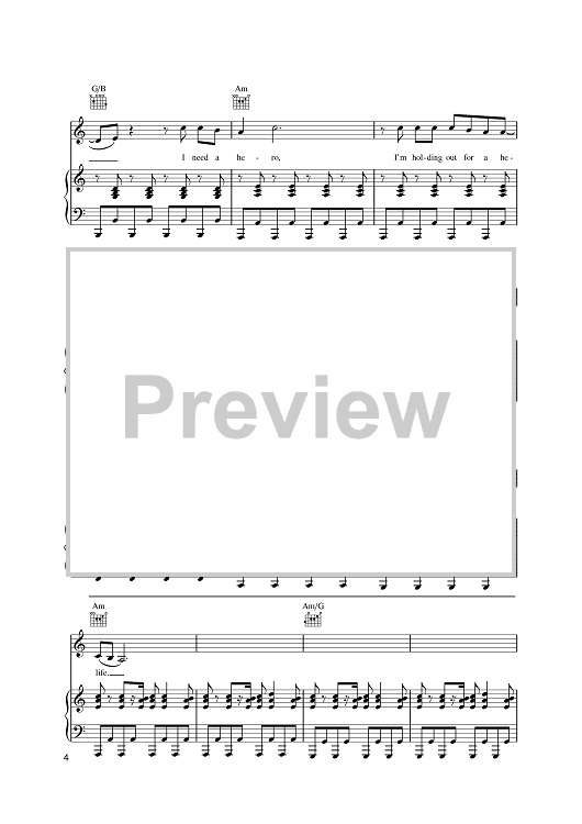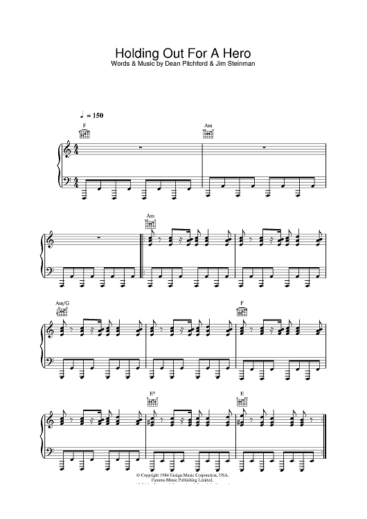 Digital Sheet Music for Holding Out For A Hero by Dean Pitchford, Jim Steinman, Bonnie Tyler scored for Piano/Vocal/Chords; id:401340