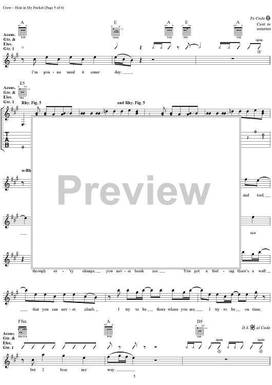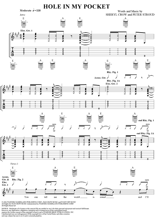 Digital Sheet Music for Hole in My Pocket by Sheryl Crow, Peter Stroud scored for Guitar Tab/Vocal; id:292060
