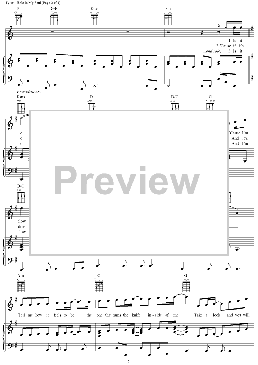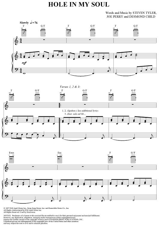 "Hole in My Soul" Sheet Music by Aerosmith