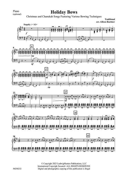 Digital Sheet Music for Holiday Bows - Piano (opt.) by Traditional, Allison Buettner scored for String Orchestra; id:508641