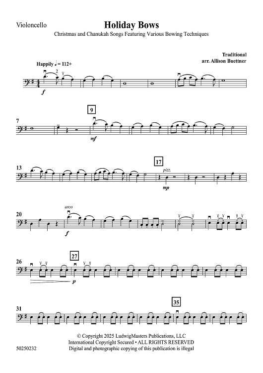 Digital Sheet Music for Holiday Bows - Violoncello by Traditional, Allison Buettner scored for String Orchestra; id:508639