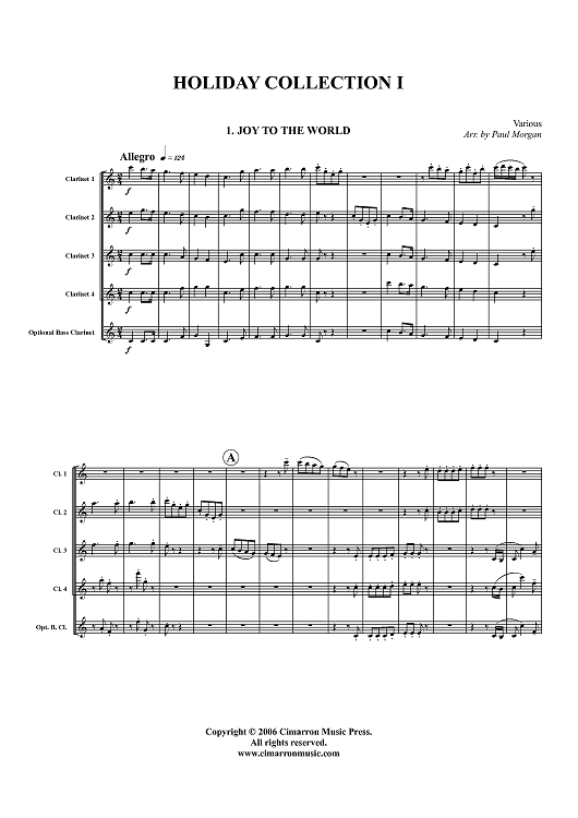 Digital Sheet Music for Holiday Collection I - Score by , Various, Paul Morgan scored for Clarinet Quartet; id:366576