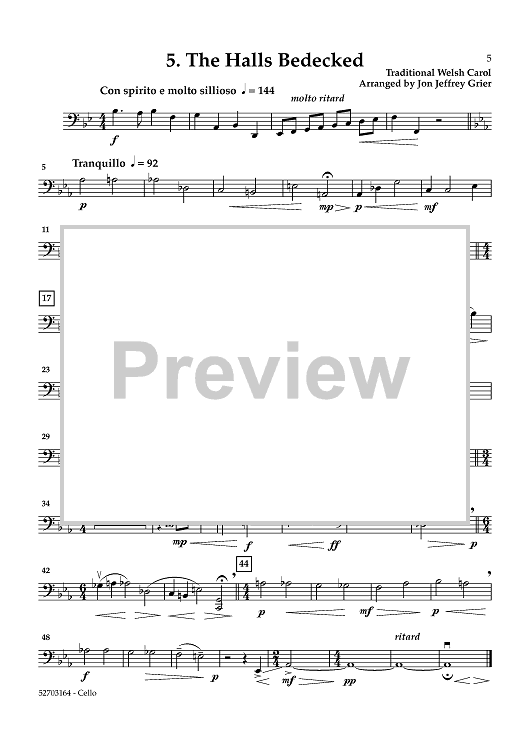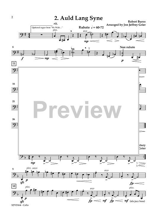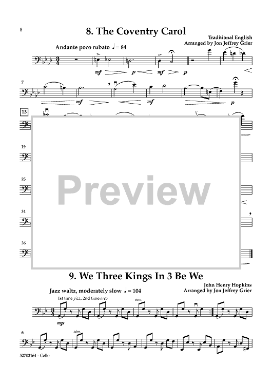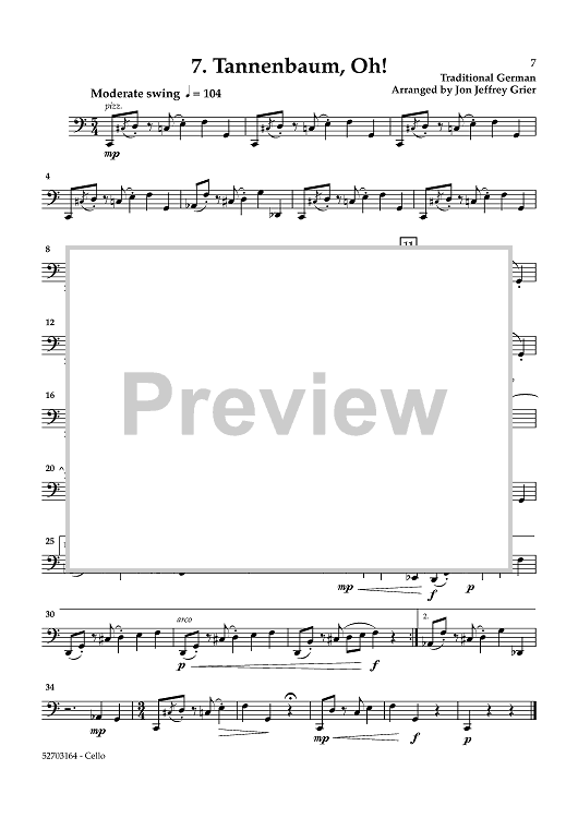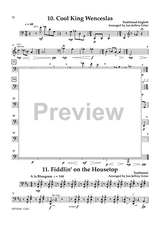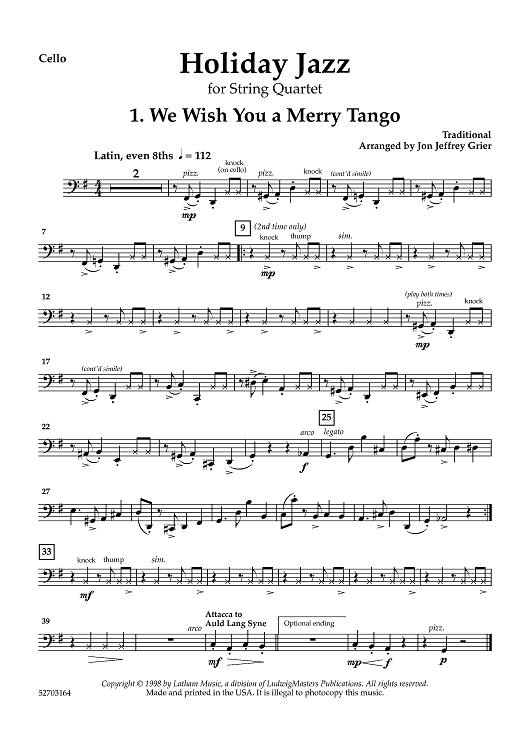 Digital Sheet Music for Holiday Jazz - Cello by Various, Jon Jeffrey Grier scored for String Quartet; id:458212