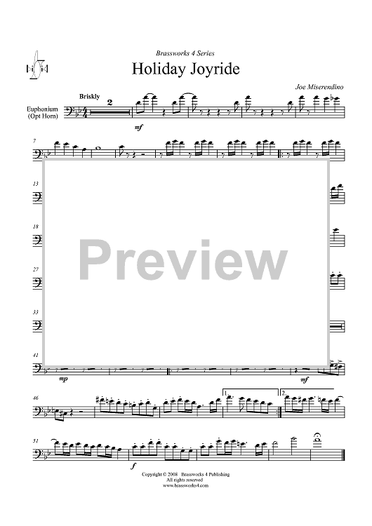 Digital Sheet Music for Holiday Joyride - Euphonium by Joe Miserendino scored for Brass Quartet; id:410344