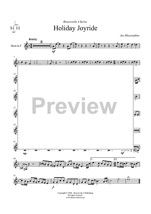 Digital Sheet Music for Holiday Joyride - Horn in F by Joe Miserendino scored for Brass Quartet; id:410347