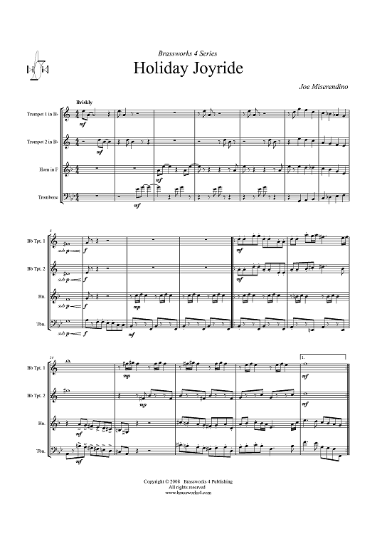 Digital Sheet Music for Holiday Joyride - Score by Joe Miserendino scored for Brass Quartet; id:410339