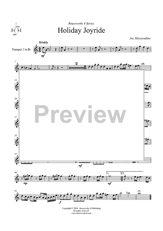 Digital Sheet Music for Holiday Joyride - Trumpet 1 in B-flat by Joe Miserendino scored for Brass Quartet; id:410340