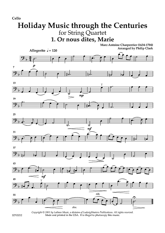 Digital Sheet Music for Holiday Music through the Centuries - Cello by Various, Philip Clark scored for String Quartet; id:458224