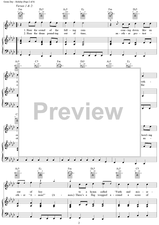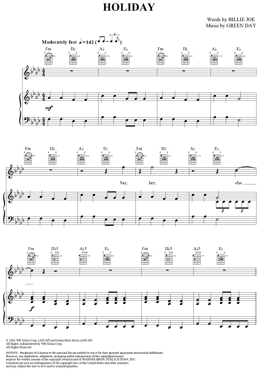 Digital Sheet Music for Holiday by Green Day, Billie Joe scored for Piano/Vocal/Chords; id:314705