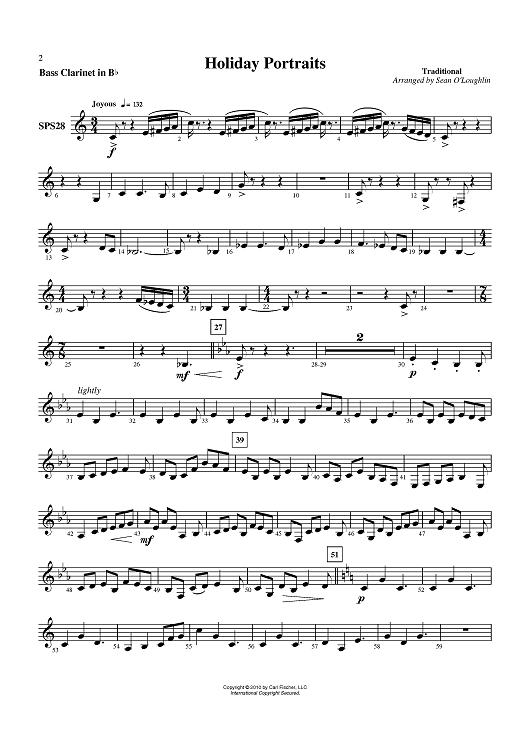 "Holiday Portraits - Bass Clarinet in B-flat" Sheet Music by Traditional