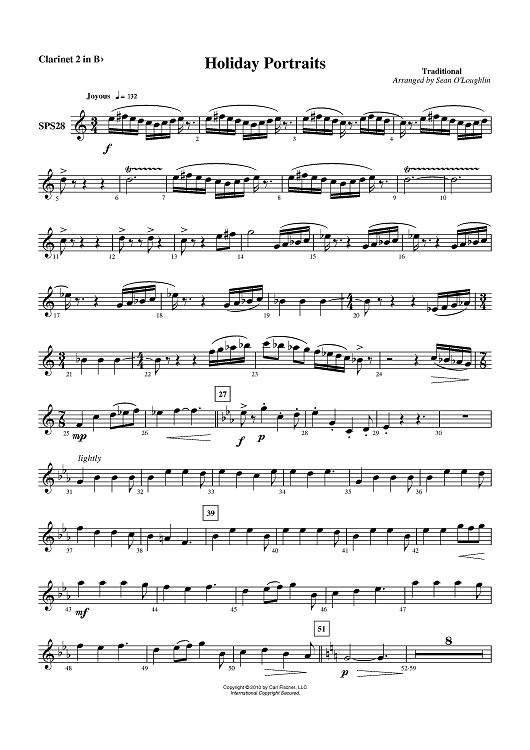 "Holiday Portraits - Clarinet 2 in B-flat" Sheet Music by Traditional