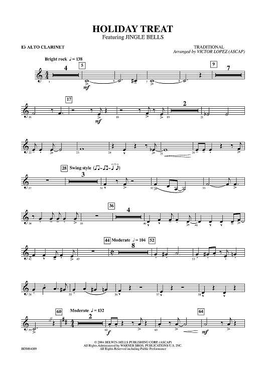 Digital Sheet Music for Holiday Treat - Alto Clarinet in Eb by Victor Lopez, Traditional scored for Concert Band; id:314382