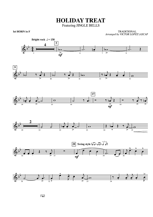 Digital Sheet Music for Holiday Treat - Horn 1 in F by Victor Lopez, Traditional scored for Concert Band; id:314392