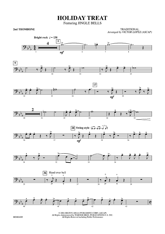Digital Sheet Music for Holiday Treat - Trombone 2 by Victor Lopez, Traditional scored for Concert Band; id:314397