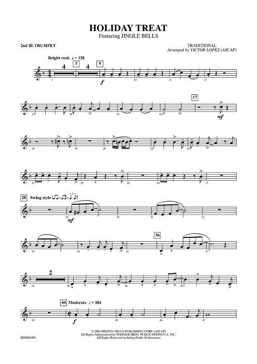 Digital Sheet Music for Holiday Treat - Trumpet 2 in Bb by Victor Lopez, Traditional scored for Concert Band; id:314390