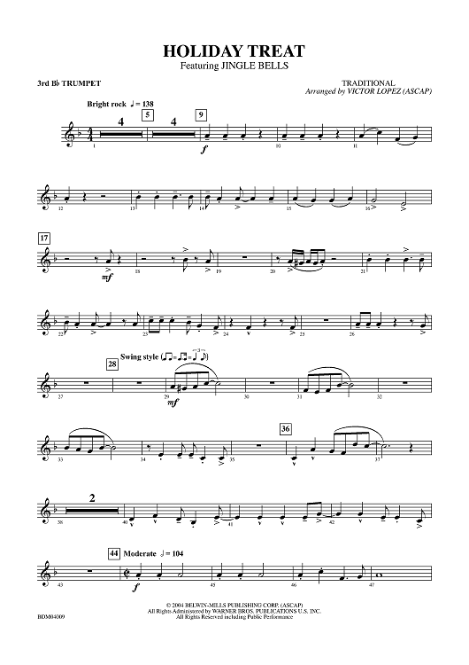 Digital Sheet Music for Holiday Treat - Trumpet 3 in Bb by Victor Lopez, Traditional scored for Concert Band; id:314391