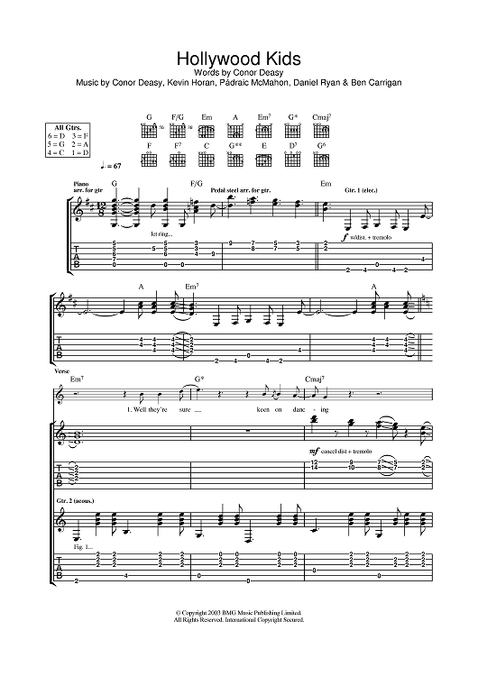 Digital Sheet Music for Hollywood Kids by The Thrills scored for Guitar Tab; id:378126