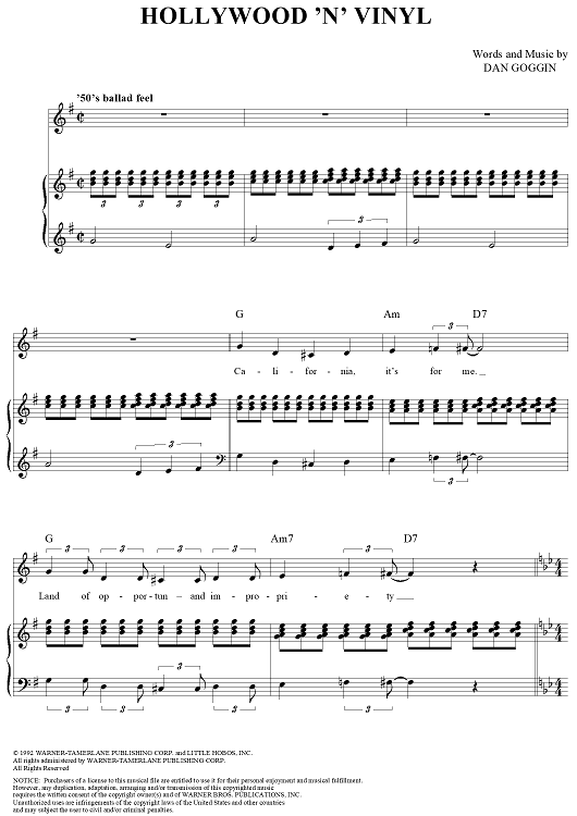 Digital Sheet Music for Hollywood 'n' Vinyl by Dan Goggin scored for Piano/Vocal/Chords; id:313569