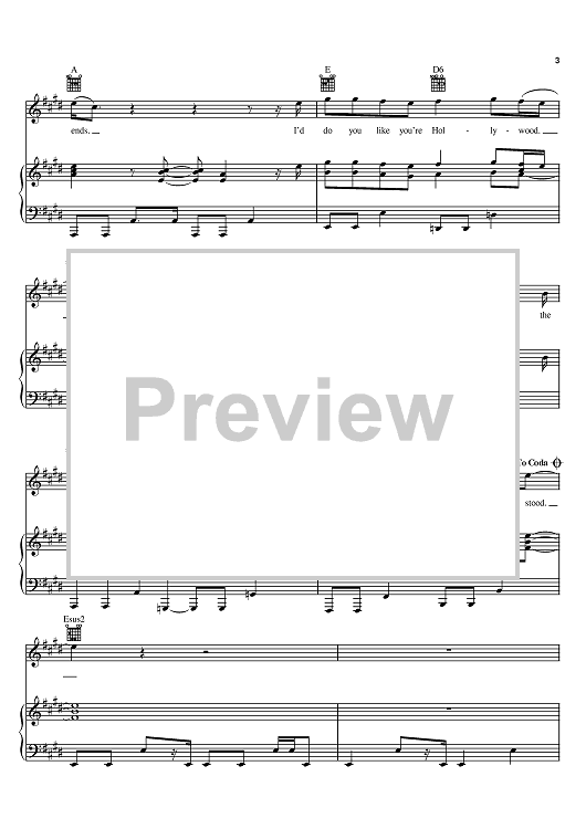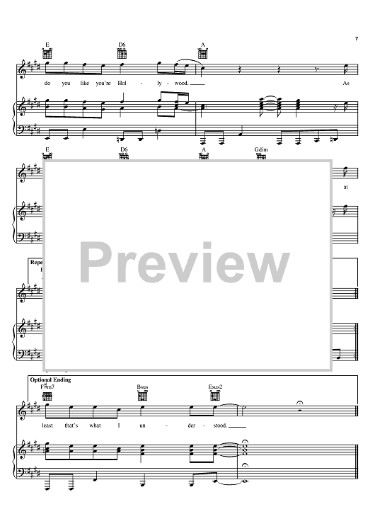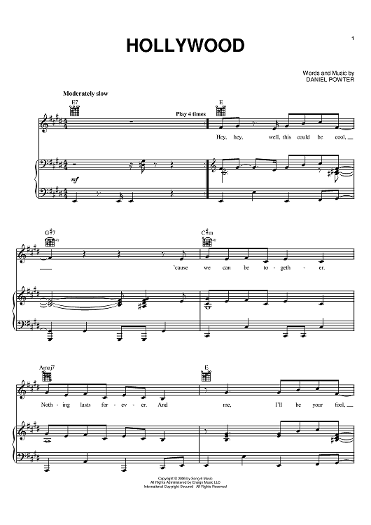 Digital Sheet Music for Hollywood by Daniel Robert Powter scored for Piano/Vocal/Chords; id:393046