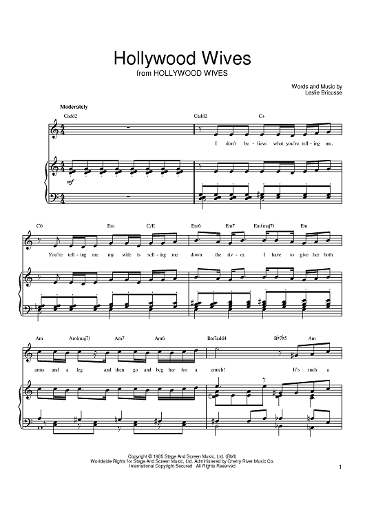 "Hollywood Wives" Sheet Music by Leslie Bricusse