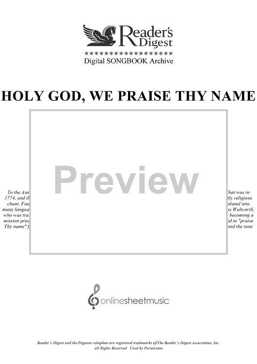 "Holy God, We Praise Thy Name" Sheet Music by Traditional Hymn