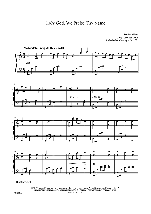 "Holy God, We Praise Thy Name" Sheet Music by Katholisches Gesangbuch