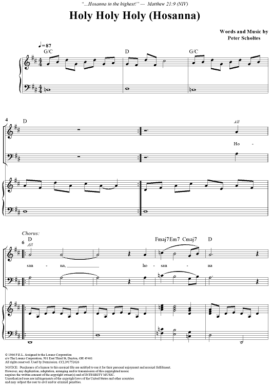 Digital Sheet Music for Holy Holy Holy (Hosanna) by Travis Cottrell, Peter Scholtes scored for Mixed Chorus/Piano; id:321080