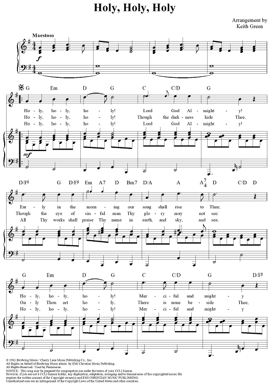 Digital Sheet Music for Holy, Holy, Holy by Keith Green scored for Piano/Vocal/Chords; id:111215