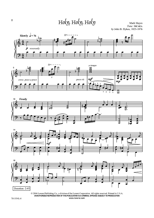 Digital Sheet Music for Holy, Holy, Holy by Mark Hayes, John Bacchus Dykes scored for Piano Solo; id:433345