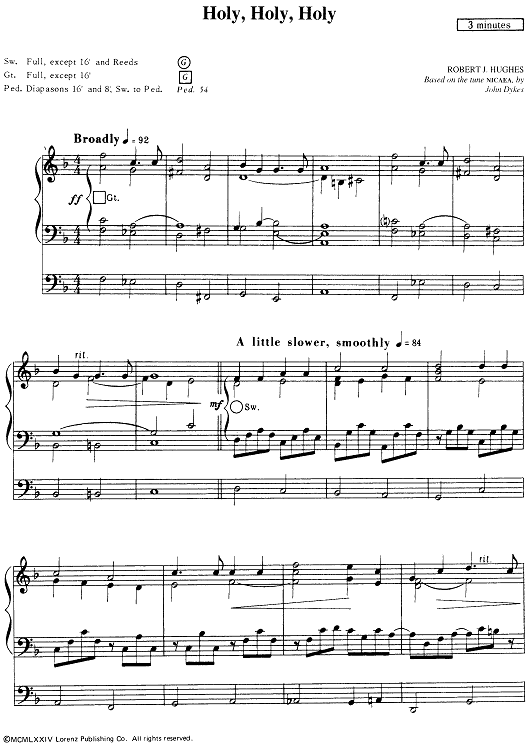 Digital Sheet Music for Holy, Holy, Holy by Robert J. Hughes scored for Organ Solo; id:501415