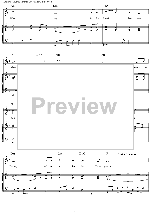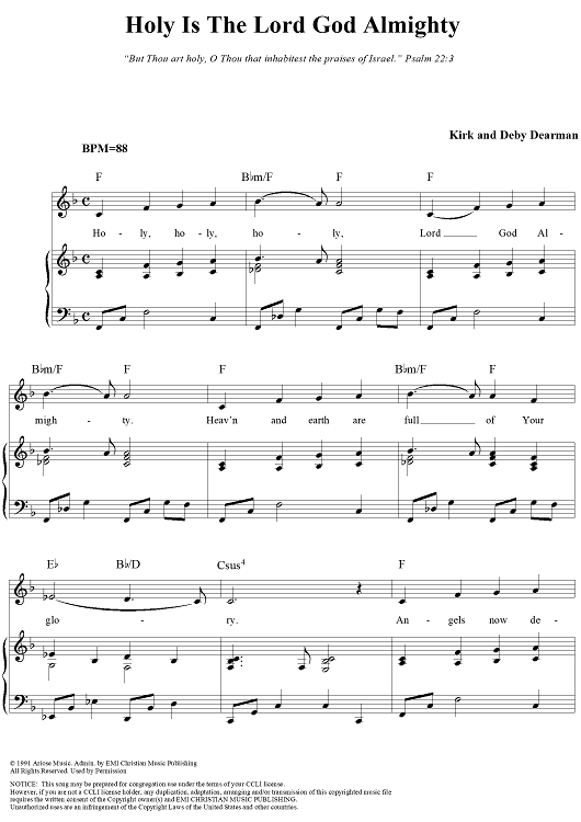 Digital Sheet Music for Holy Is The Lord God Almighty by Kirk Dearman, Deby Dearman scored for Piano/Vocal/Chords; id:111522