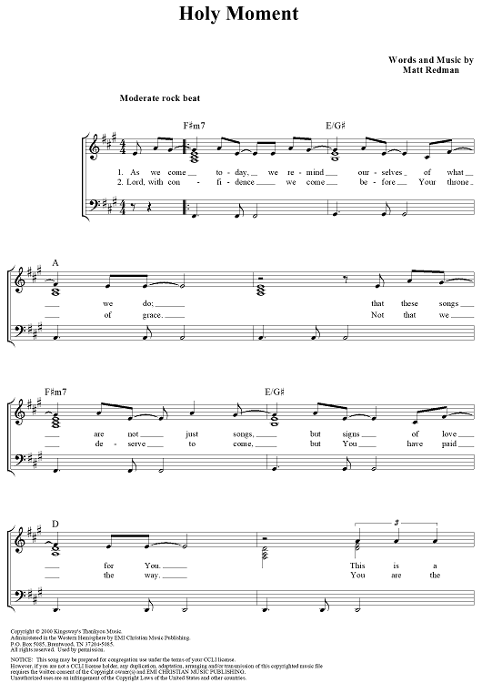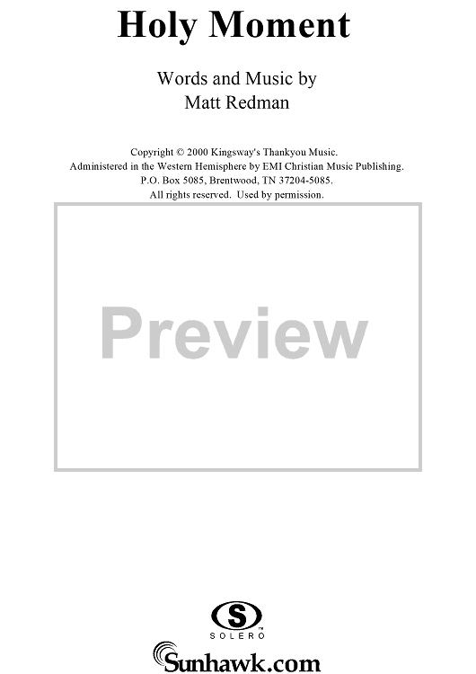 Digital Sheet Music for Holy Moment by Matt Redman scored for Piano/Vocal/Chords; id:207006