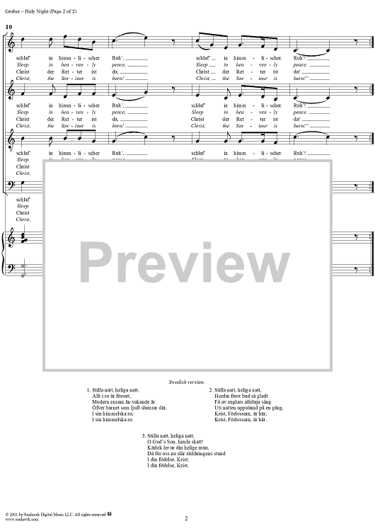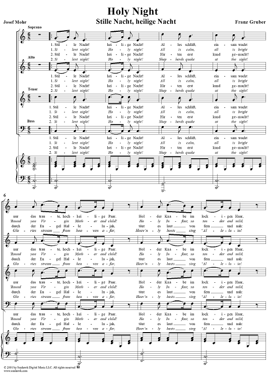 Digital Sheet Music for Holy Night by Franz Xaver Gruber scored for Four-part Mixed Chorus; id:256054