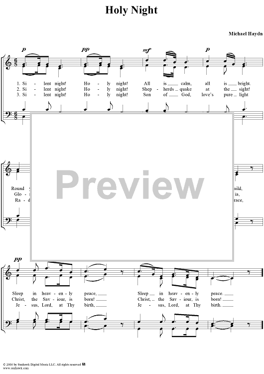 Digital Sheet Music for Holy Night by Michael Haydn scored for SATB Choir; id:317847
