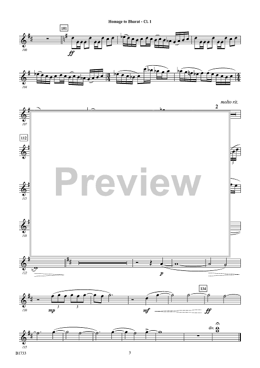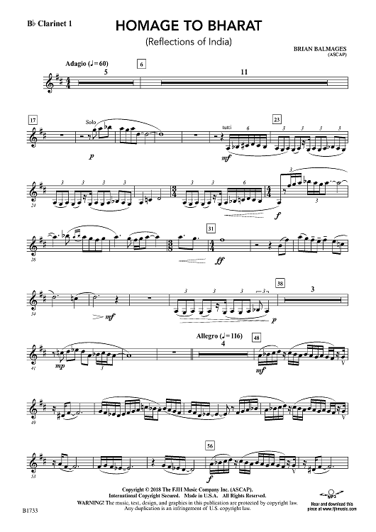 Digital Sheet Music for Homage to Bharat - Bb Clarinet 1 by Brian Balmages scored for Concert Band; id:499689