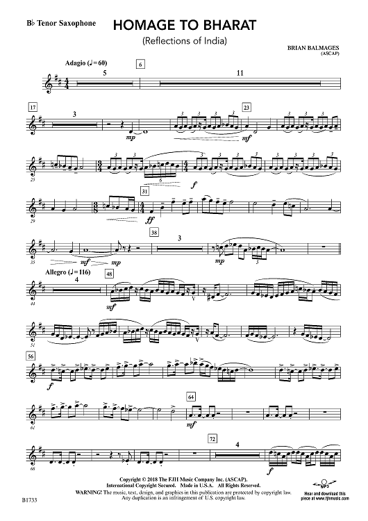 "Homage to Bharat - Bb Tenor Sax" Sheet Music by Brian Balmages
