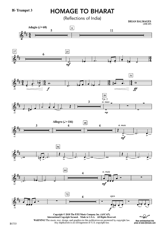 "Homage to Bharat - Bb Trumpet 3" Sheet Music by Brian Balmages