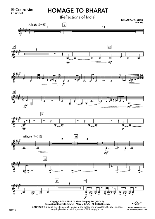 Digital Sheet Music for Homage to Bharat - Eb Contra Alto Clarinet by Brian Balmages scored for Concert Band; id:499693