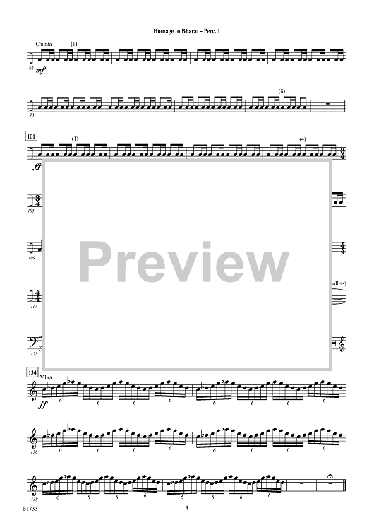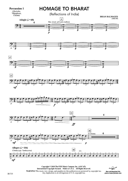 Digital Sheet Music for Homage to Bharat - Percussion 1 by Brian Balmages scored for Concert Band; id:499714