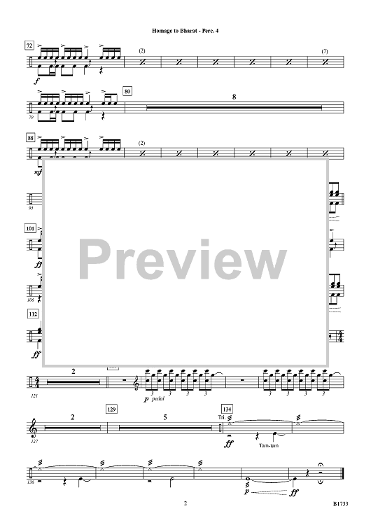 Digital Sheet Music for Homage to Bharat - Percussion 4 by Brian Balmages scored for Concert Band; id:499717