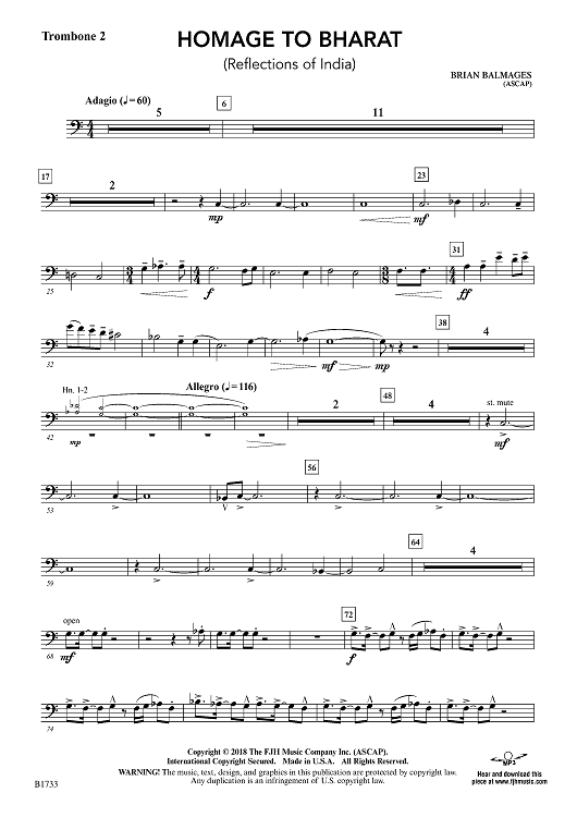 "Homage to Bharat - Trombone 2" Sheet Music by Brian Balmages