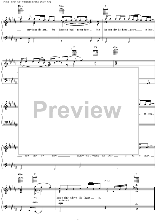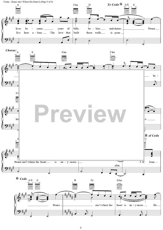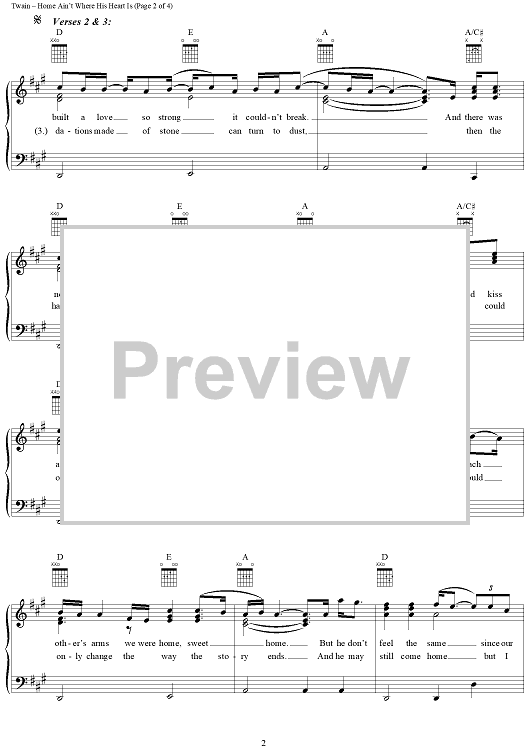 Digital Sheet Music for Home Ain't Where His Heart Is (Anymore) by Shania Twain, Robert Lange scored for Piano/Vocal/Chords; id:112048